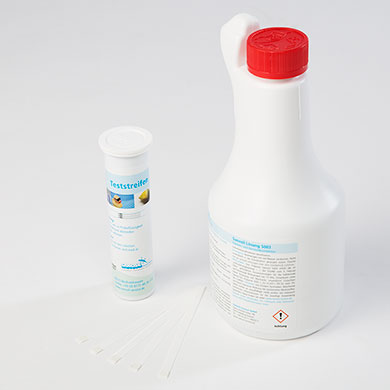 | Sanosil Test Strips – For quickly determining the Sanosil disinfectant content of liquids. 100 strips/unit. | REF 830112 |