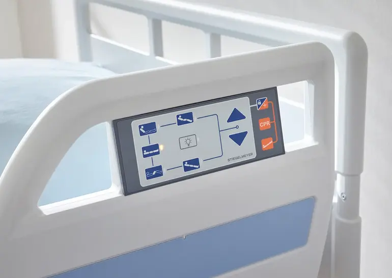 Différents moyens parfaitement assortis sont disponibles pour commander l’Evario one : une télécommande ergonomique, le panneau de commande intégré light (en cas d’équipement avec un système de protection à barreaux discontinus), les modules de commande côté pied de tailles différentes (S et M) et une commande-pédale pratique pour régler la hauteur. Une combinaison optimale correspond à chaque scénario d’utilisation.