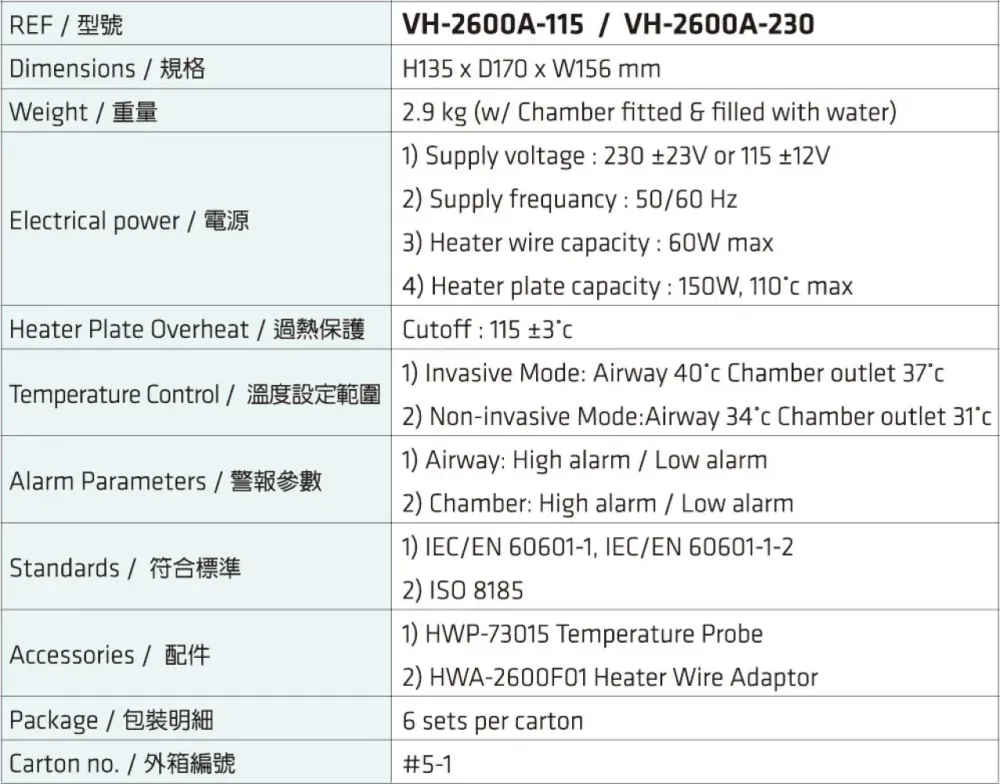 L’humidificateur VH-2600A est conçu pour réchauffer et humidifier les gaz respiratoires délivrés aux patients via un circuit respiratoire. Il s’adresse aux patients nécessitant :