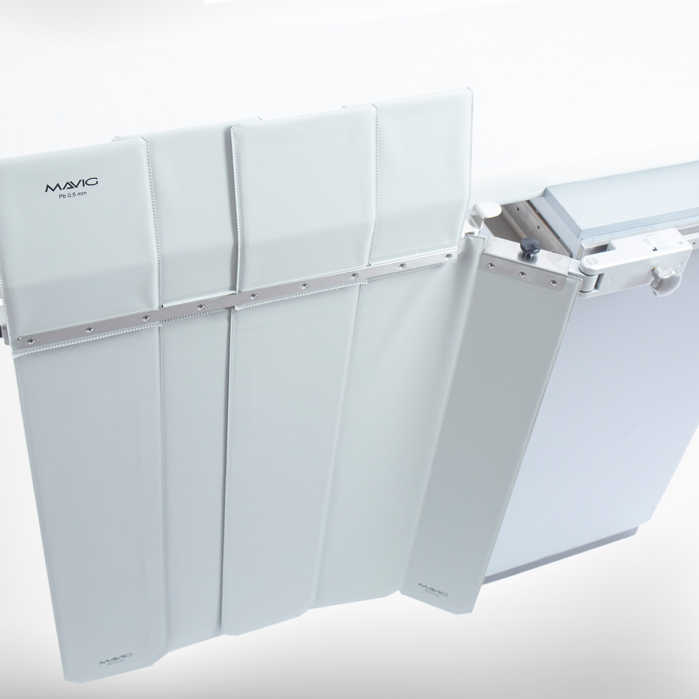 NOUVEAU : L' enveloppe extérieure des écrans de protection flexibles contre les rayons X est désormais fabriquée en TPU (polyuréthane thermoplastique), un matériau recyclable. Extrêmement résistant à la traction et à la déchirure, ce matériau est exempt de phtalates et se désinfecte facilement avec des produits de nettoyage courants. Sa compatibilité avec le matériau de radioprotection a été prouvée lors d'essais en chambre climatique. De plus, le TPU garantit une durée de vie extrêmement longue grâce à un nouveau procédé de fabrication breveté (soudage haute fréquence).